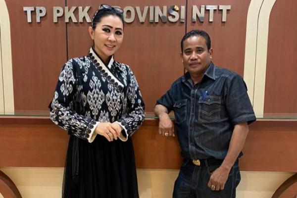 Ketua Dekranasada NTT, Julie Laiskodat (kiri) adalah disainer pakaian adat TTS yang dikenakan Presiden TTS, Jokowi pada peringatan HUT ke-75 Kemerdekaan usai diskusi dengan Wabup TTS, jhony Army konay, (kanan).