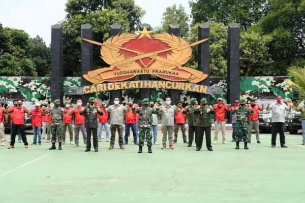 Katantt.com - Peringati HUT TNI ke-75 dan meringankan beban masyarakat yang terdampak Pandemi Covid-19, Kodiklatad bekerjasama dengan Komunitas Pajero Indonesia One (Piwaners) melaksanakan kegiatan bakti sosial (baksos) berupa pemberian sembako sebanyak 200 bingkisan kepada perwakilan dari Legiun Veteran Republik Indonesia (LVRI), Warakawuri dan Kaum Dhuafa serta masyarakat yang terdampak Covid-19 di Lapangan Makodiklatad.