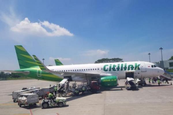 Proses pemuatan kargo ke pesawat Citilink di Bandara Soekarno-Hatta, Cengkareng, Banten.