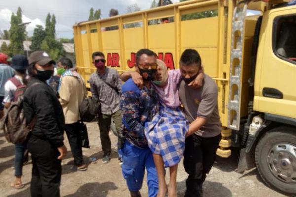 Sejumlah Bintara Polres Lembata turun langsung membantu mengevakuasi sejumlah lansia yang terkena erupsi Gunung Api Ile Lewotolok.