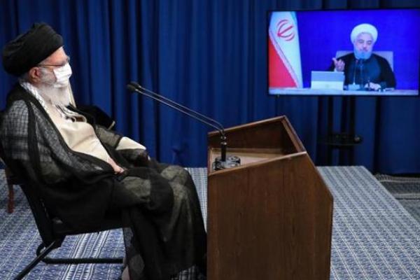 Pemimpin Revolusi Islam, Ayatollah Seyyed Ali Khamenei berbicara kepada pemerintah Iran melalui tautan video pada kesempatan awal Pekan Administrasi di negara itu, di Teheran, pada 23 Agustus 2020.