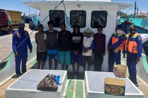 Lima nelayan asal Sikka yang berhasil diringkus polisi karena menangkap ikan menggunakan bom bersama barang bukti dari atas kapal.