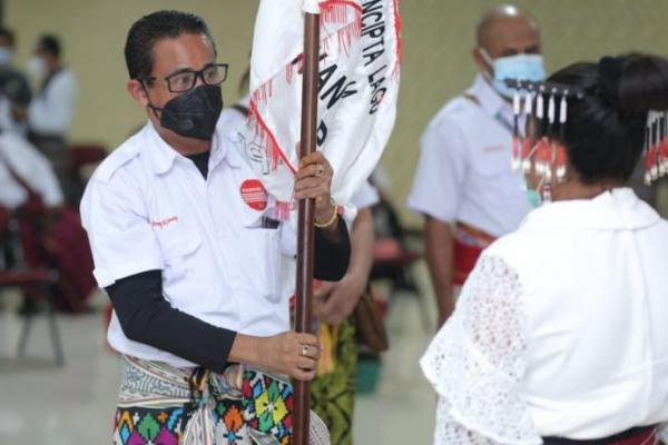 Wakil Bupati TTS, Johny Army Konay,SH,MH, yang juga dipercaya sebagai Ketua DPC PAPPRI TTS didaulat sebagai penerima pataka dan bendera PAPPRI serta bendara merah putih.