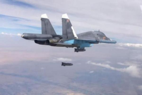Sebuah Sukhoi Su-34 Rusia menyerang target di Aleppo, Suriah [Mil.ru/Monitor Timur Tengah]