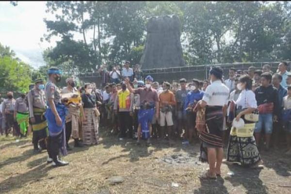 Menerima secara adat hewan ternak pemberian Kapolres Sumba Barat, John Lado berbalas dengan memberikan satu ekor babi bertaring sebagai wujud rasa persaudaraan.