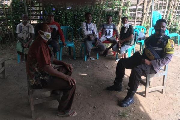 Kapolsek Takari Iptu Nyoman Gurina,SH,MH dan anggota saat mengunjungi orang tua Nanny sebelum acara pemakaman, Rabu (19/5/2021) lalu