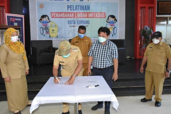 Pembukaan lokakarya ditandai dengan penandatanganan komitmen bersama penanganan Limbah Infeksius di Kota Kupang.