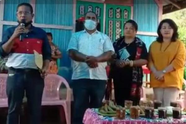 Wabup TTS, Johny Army Konay,SH,MH yang didampingi Asisten II Setda TTS, Edison Sipa, Direktur PDAM Soe, Lely Hayer dan Kasat Pol PP, Yopic Magang menyampaikan sekapur sirih sebelum menyerahkan hasil RDP dan surat keterangan pencabutan laporan polisi di Polres TTS kepada masyarakat Bonleu.