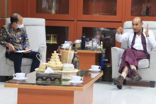 Gubernur NTT, Viktor Bungtilu Laiskodat saat audiensi dengan Kepala Divisi (Kadiv) Regional Kantor Wilayah (Kanwil) Bulog NTT, Asmal di ruang kerjanya.