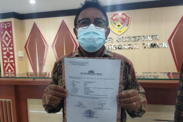 Kepala Biro Hukum Setda NTT Provinsi NTT, Alex Lumba,SH,MHum menunjukkan surat laporan polisi usai melaporkan LSM Araksi ke Polda NTT terkait pencemaran nama baik Gubernur NTT, Viktor Bungtilu Laiskodat.