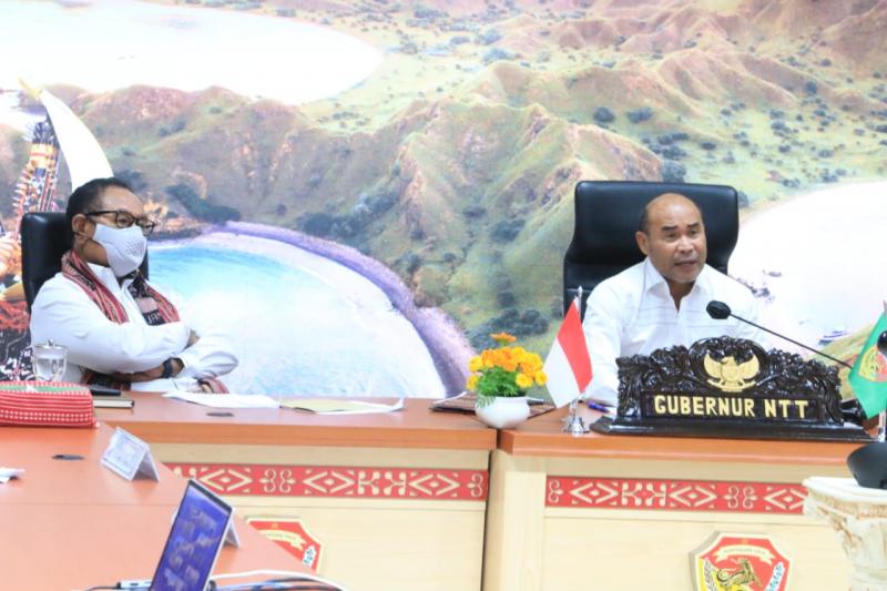Gubernur NTT Viktor Bungtilu Laiskodat didampingi Wagub NTT, Josef Nae Soi saat Diskusi Publik Bersama Sekretariat Gugus Tugas Reforma Agraria secara virtual.
