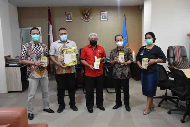 Kunjungan Kepala Divisi Regional Perum Bulog Kanwil NTT, Asmal bersama jajarannya dalam rangka silaturahmi sekaligus mempromosikan beras berkualitas dan memiliki kandungan gizi Fortivit yang diproduksi oleh Bulog.