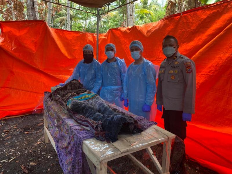 Tim medis didampingi Kapolsek Kupang Barat Ipda Hendra Karel Wadu yang melakukan otopsi terhadap jenasah IRT di Desa Taloitan Kecamatan Nekamese Kabupaten Kupang.
