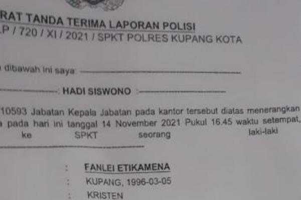 Kasus pengeroyokan tersebut tercantum dalam laporan polisi nomor: STTPL/720/XI/2021/SPKT-Polres Kupang Kota tertanggal 14 Novemver 2021 ditandatangani Bripka hadi Siswono atas nama Kapolres Kupang Kota.