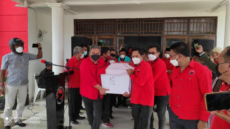 Jenazah mantan Gubernur NTT, Frans Lebu Raya saat disemayamkam di Sekretariat PDIP NTT di Jalan Piet Tallo, Oesapa Selatan, Senin (20/12/2021). Nampak pengurus DPD PDIP NTT sementara mengusung peti jenazah.