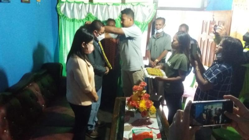 Pengalungan kain adat TTS diberikan saat dirinya bersama istri, Jenny Konay-Boboy menyambangi kediaman Yaner Sesfaot.