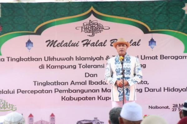 "Ini visi luhur dari pendiri bangsa yang harus kita bangun di Indonesia umumnya dan NTT pada khususnya," sambung Viktor Bungtilu Laiskodat saat memberikan sambutan pada acara Halal Bi Halal Akbar 1443 Hijriah Tingkat Kabupaten Kupang di lokasi pembangunan masjid Agung Darul Hidayah, Kampung Toleransi Naibonat Kupang, Sabtu (28/5/2022).