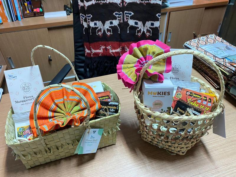 Menariknya, untuk mempercantik goody bag itu, ada kain tenunan yang dibentuk seperti kipas angin. Ini juga asli produksi UMKM binaan Bank NTT. Motif tenunannya beraneka warna menyolok, yang sepintas dilihat, sangat anggun dan mencirikan kekayaan intelektual serta kekayaan alam NTT.