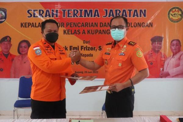 Serah terima jabatan Kepala Kantor Pencarian dan Pertolongan Kelas A Kupang dari pejabat lama Emi Frizer kepada pejabat yang baru, I Putu Sudayana.