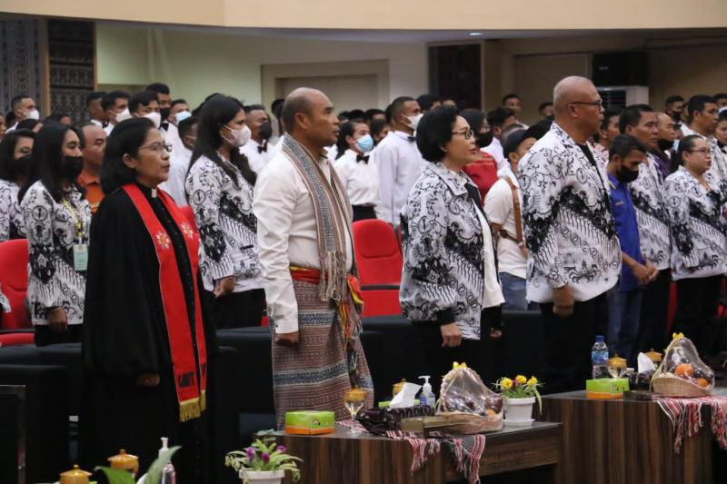 Gubernur NTT, Viktor Bungtilu Laiskodat menghadiri pelantikan dan pengukuhan pengurus Badan Pelaksana Harian Pengurus Besar PGRI Universitas Persatuan Guru 1945 NTT masa bakti 2022-2027 di aula El Tari Kantor Gubernur NTT, Selasa (2/8/2022)