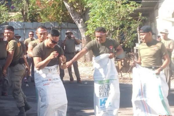 Anggota Satuan Brimob dari Batalton A Pelopor Kupang menggelar lomba balap karung dan lomba sarung berantai memeriahkan HUT ke 77 RI, sabtu (13/8/2022).