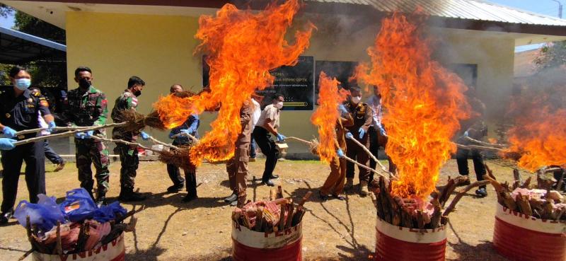 Pemusnahan tersebut berlangsung di Kantor Karantina Wilayah Kerja PLBN Wini, Timor Tengah Utara. Hadir pada pemusnahan tersebut perwakilan dari Bea Cukai, Imigrasi, Polri dan TNI dari Satuan Tugas Pengamaman Perbatasan.
