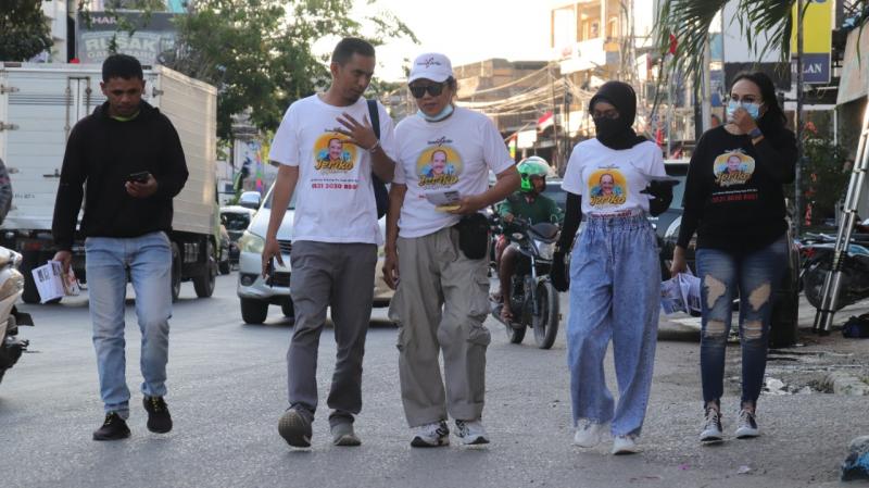 Pengusaha Teddy Tanone bersama Relawan Teman Jeriko berjalan kaki puluhan kilometer menyusuri Kota Kupang menggalang dukungan KTP demi sosk Jefri Riwu Kore, Sabtu (20/8/2022).