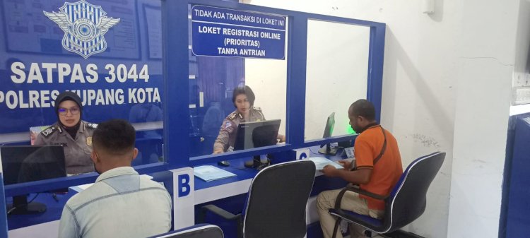 Pelayanan diselenggarakan di Satpas Polresta Kupang Kota dipimpin Dirlantas Polda NTT Kombes Pol Rahmat Hakim, SIK, MH.