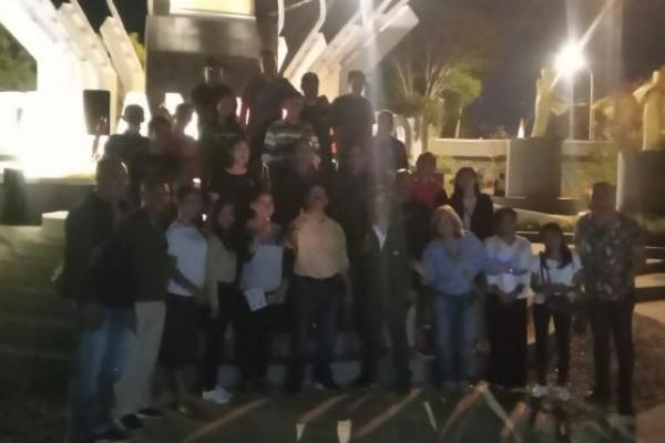 Penjabat Wali Kota Kupang George Hadjoh foto bersama pegiat seni di Kota Kupang saat menghadiri penstas seni dan budaya di Tamam Ina Boi yang memgambil thema