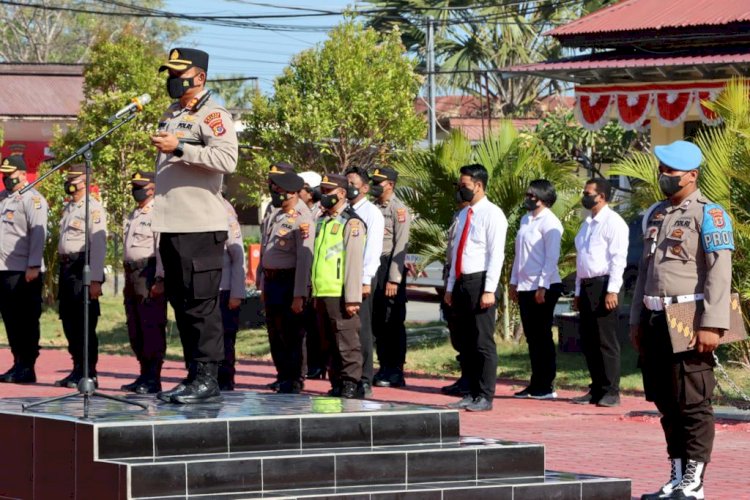 Kapolres Kupang, AKBP FX Irwan Arianto saat memimpin apel di Mako Polres Kupangl, Senin (26/9/2022)