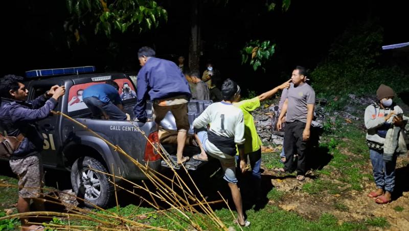 Anggota Poltres Sumba Timur melakukan olah tempat kejadian perkara sekaligus mengevakuasi jenasah kakek Hingu Meha yang tewas terseret banjir, Senin (3/10/2022) malam.