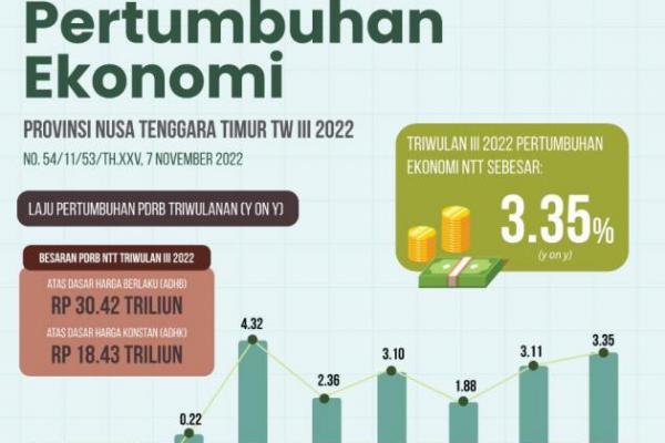Ekonomi NTT triwulan III-2022 tumbuh sebesar 3,35 persen dibandingkan dengan periode yang sama pada tahun sebelumnya (y-on-y)," kata Nurani.