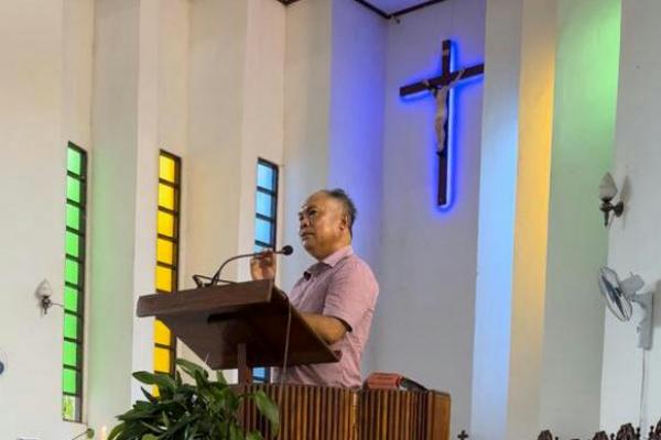 Kabid Propam Polda NTT, Kombes Pol Dr Drs Domincus Savio Yempormase, MH beribadah dengan umat Katolik di gereja Katolik Yesus Gembala Yang Baik Kalabahi, Alor, Minggu )27/11/2022).