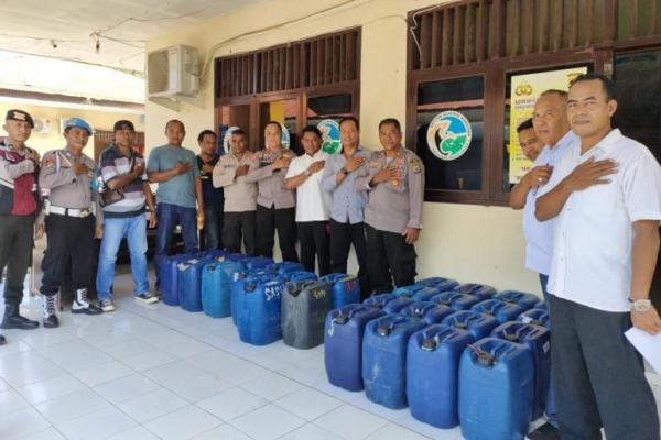 Aparat Polres Sikka, Nusa Tenggara Timur mengamankan ratusan liter minuman keras (Miras) tradisional, Kamis (8/12/2022). Miras yang diamankan berasal dari kabupaten tetangga dari Kabupaten Ngada.