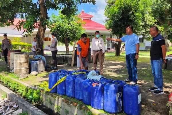 Barang bukti, BBM subsidi dalam jerigen dengan tersangka yang diamankan jajaran Polres Ende, Jumat (9/12/2022).