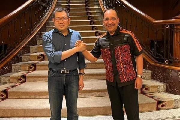 Ketua Umum Partai Perindo, Hary Tanoesoedibjo dan Jefri Riwu Kore melakukan salam komando pada pertemuan beberapa waktu lalu.