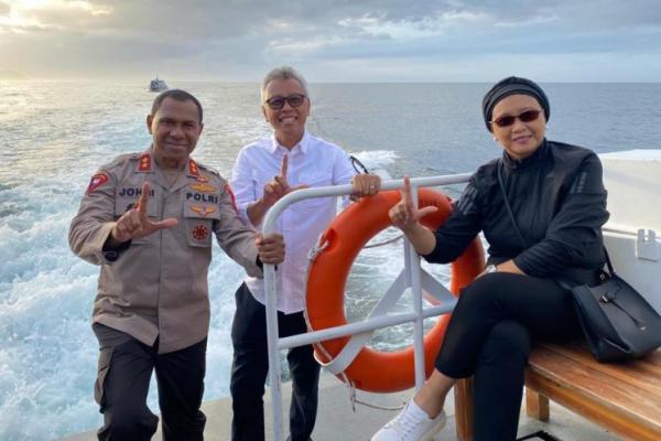 Kapolda NTT, Irjen Pol Johni Asadoma bersama Menlu RI, Retno Marsudi menuju Golomori guna memastikan keamanan dan kenyamanan lokasi pelaksanaan pertemuan para pimpinan negara ASEAN, Jumat (6/1/2023).