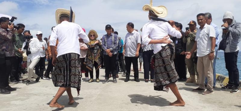 Begitu pun saat Mendes, Abdul Halim Iskandar dan Wamendes PDTT Budi Arie Setiadi bersama rombongan turun dari atas KM Bahari Express. Keduanya disambut dengan tarian adat oleh para penari dan para manaleo (tokoh adat) begitu turun dari KM Bahari Express .