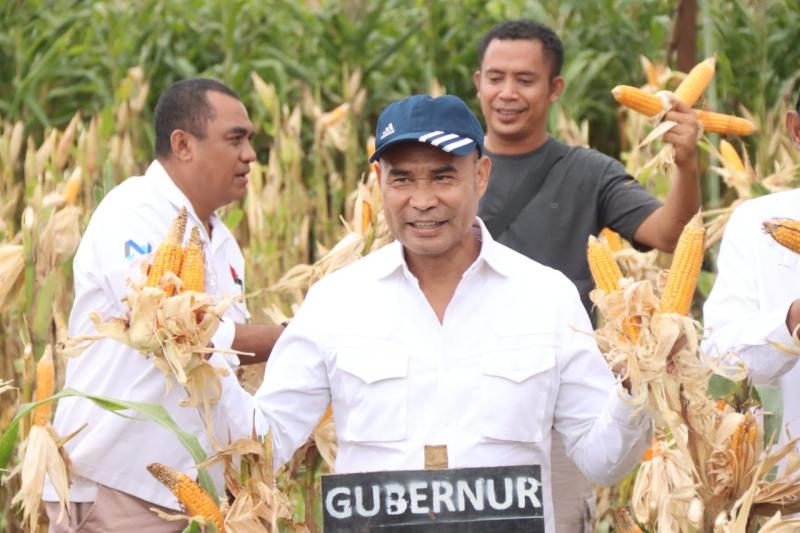 Gubernur NTT, Viktor Bungtilu Laiskodat saat melakukan panen jagung program TJPS di Desa Hameli Ate Kecamata Kodi, Senin (6/3/2023).