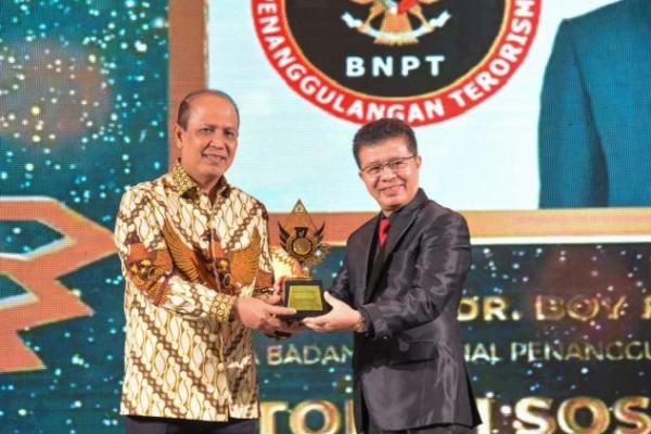 Kepala Badan Nasional Penanggulangan Terorisme Republik Indonesia, Komjen Pol Dr Boy Rafli Amar, MH menerima penghargaan Tokoh Sosialisasi Persatuan dan Toleransi Indonesia.