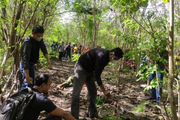 Anggota Polsek Miomaffo Timur dan unit Identifikasi Satreskrim Polres TTU tiba di lokasi kejadian dan melakukan tindakan kepolisian atas jenazah kakek yang meninggal dalam kebun, Jumat (24/3/2023).