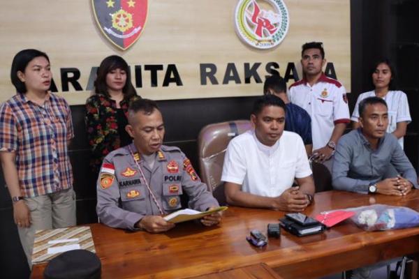 Kasat Reskrim Polres Belu, Iptu Djafar Awad Alkatiri memberikan keterangan pers terkait kasus pemerkosaan anak di bawah umur yang berhasil dibekuk, Minggu (29/3/2023).