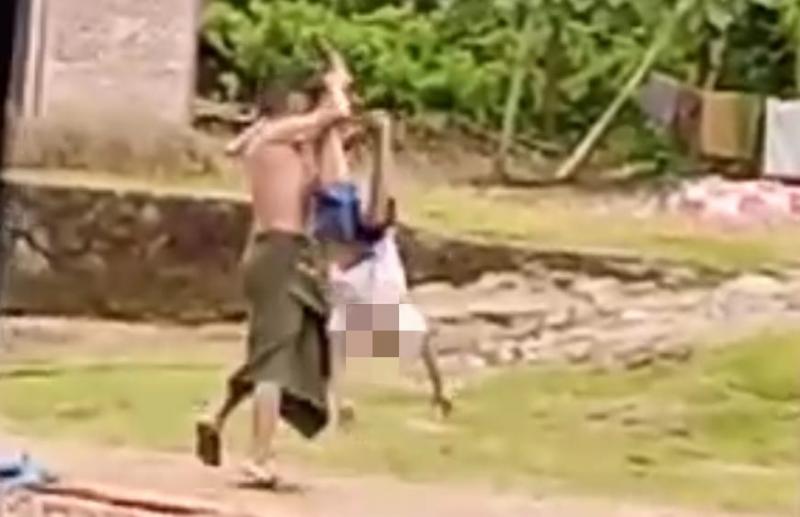 Tangkapan layar memperlihatkan seorang pria dewasa sedang menganiaya seorang anak bawah umur di Pulau Adonara Kecamatan Adonara Tengah, Kabupaten Flores Timur