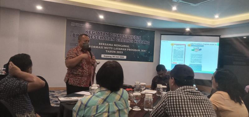 KATANTT.COM--BPJS Kesehatan Cabang Kupang menggelar Sosialisasi Program Jaminan Kesehatan Nasional (JKN) dan diskusi dengan awak media yang ada di Kota Kupang mengambil tema Bersama Mengawal Transformasi Mutu Layanan Program JKN tahun 2023.