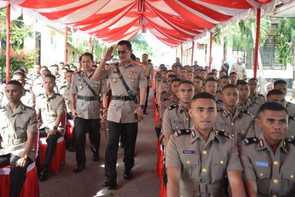 "Kalian merupakan kebanggaan buat keluarga, orang tua dan masyarakat sehingga kegembiraan jangan berlebihan. Ingat, satu hal, tugas pokok Polri itu adalah melindungi nah artinya di sini kata walaupun anda punya kewenangan tapi anda adalah sebagai pelayan sebagai penanggung jawab keamanan dalam negeri," sambung mantan Kapolres Sumba Barat ini.