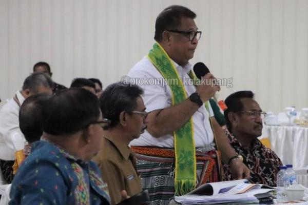 KATANTT.COM--Penjabat Wali Kota Kupang, Fahrensy Funay membeberkan sejumlah program prioritas yang telah dilakukan Pemerintah Kota Kupang saat rapat kerja para bupati/wali kota bersama Penjabat Gubernur NTT, Ayodhia Kalake di Kupang, Jumat (13/10/2023).