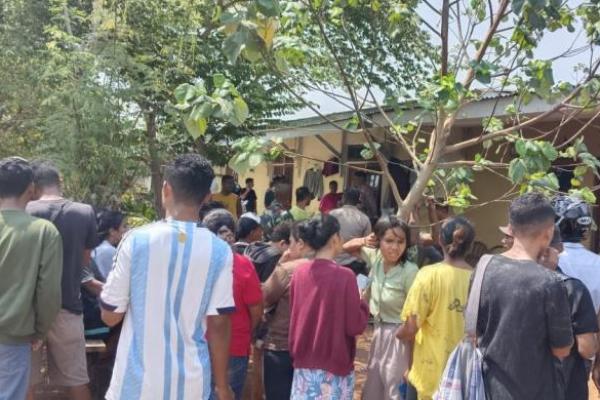 Warga Desa Penfui Kecamatan Kupang Tengah Kabupaten Kupang mendatangi kost mahasiswa Unika yang ditemukan tewas gantung diri, Senin (30/10/2023).