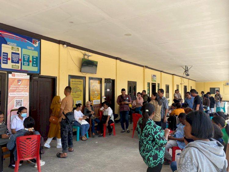 Nampak pemohon Surat Keterangan Catatan Kepolisian (SKCK) di Mapolres Kupang membludak cukup banyak, pada Jumat, 29 Desember 2023.