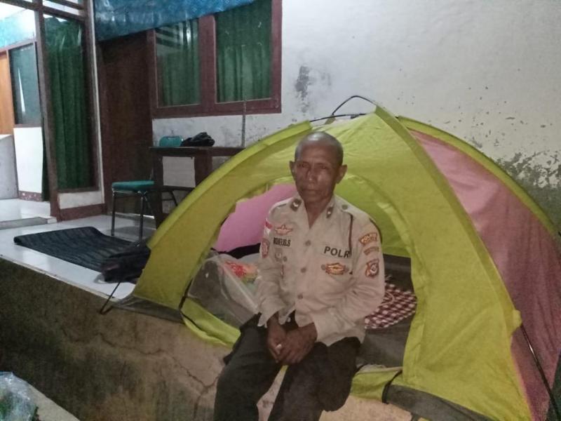 Tenda Dome pun dibawanya ke lokasi pengamanan dan dipasangnya di teras kantor Camat Amfoang Timur untuk dipakai beristirahat saat lelah sambil memantau situasi di sekitarnya.