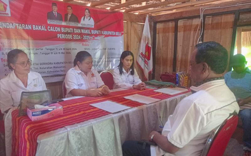 "Terimakasih Ibu Ketua, Ketua Bapillu dan pengurus partai hari ini kami diterima di rumah Gerindra, kami daftar sebagai balon Bupati Belu periode 2024-2029," ujar dia kepada awak media.